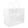 Sacchetto di carta bianco con manico ritorto 80 g/m², ideale per negozi, ristoranti e servizi take away.